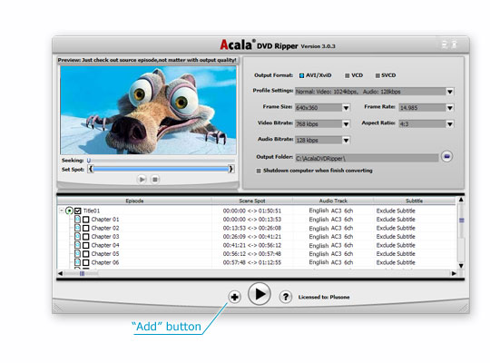 Acala DVD Ripper je užitečný nástroj, který umožňuje ripovat DVD filmy do AVI/XviD, VCD/MPEG-1, SVCD/MPEG-2 formátů. Nabízí efektivní komprimaci, výstupní soubor v minimální velikostí a nejlepší kvalitou! Možnost nastavení výstupních parametrů. Podporuje hromadnou konverzi. Po dokončení zpracování filmů se počítače automaticky vypne.