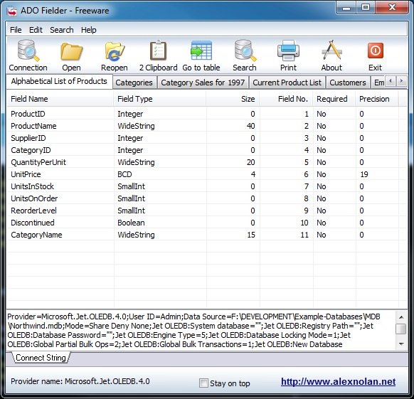 ADO Fielder je jednoduchý vývojový nástroj, který umí načíst základní seznam polí z vybrané tabulky nebo z libovolné kompatibilní ADO databáze. Tento nástroj je určen pro softwarové a databázové vývojáře, kteří často potřebují odkazovat pole na jejich název v kódu.
