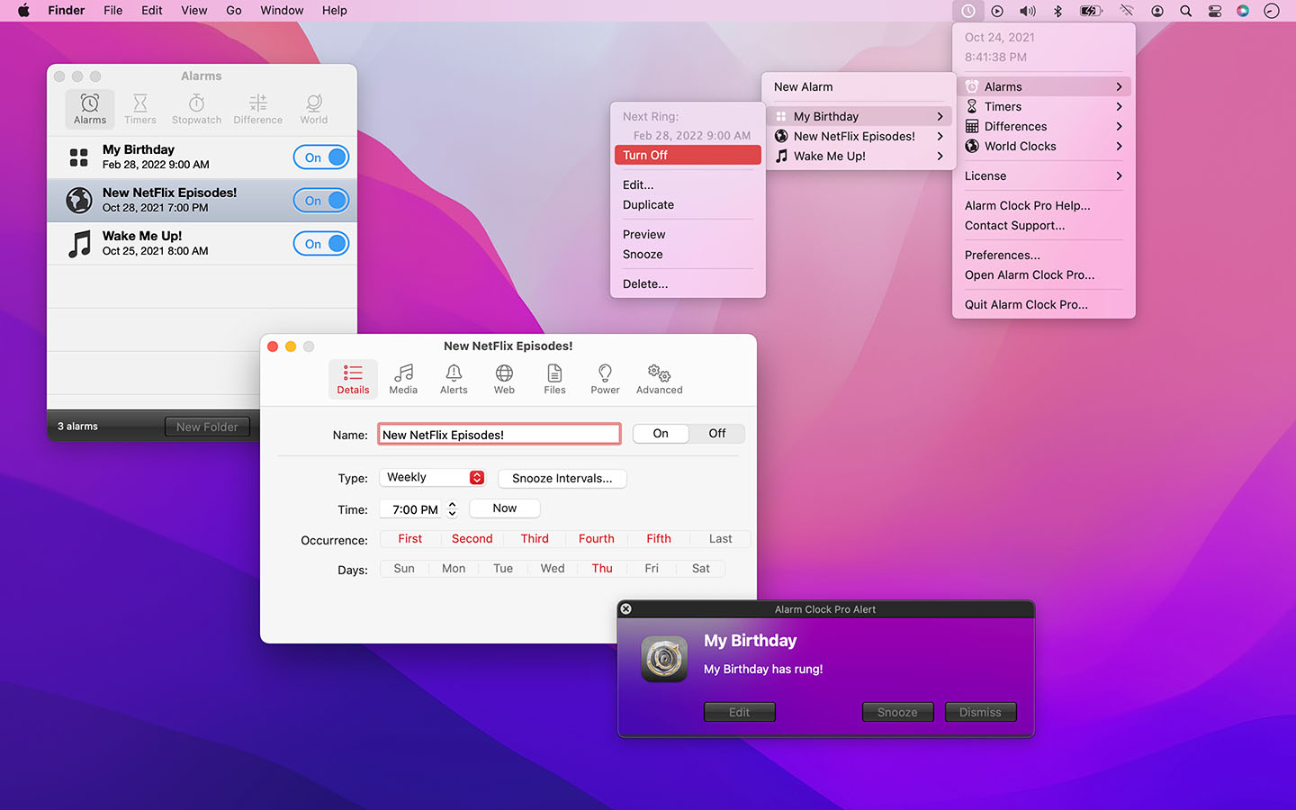 Odložte otravné retro pípání a bzučení budíku. S nástrojem Alarm Clock Pro se můžete probudit do klidu vaší zvolené hudby. Program je, ale také schopen upozornit na důležité aktivity a úkoly během celého dne. Nabízí také nástroje usnadňující plánování vašich aktivit.