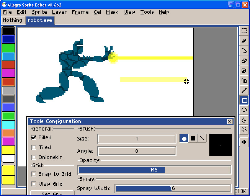 Allegro Sprite Editor je program, který je možné využít k tvorbě různých grafických prvků pro video-hry a další aplikace. Editor je snadno ovladatelný a nabízí širokou škálu funkcí, které usnadňují tvorbu grafiky.