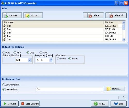 ALO RM to MP3 Converter je profesionální konvertor pro převdádění RM, RA, RAM, RMVB, RMJ, WAV, MP3, WMA, OGG, AVI, MP2, AIFF, AU, VOX formátů do WAV, MP3, OGG, WMA, RM. Program umožňuje jednoduché ovládání pomocí drag and drop metody a rychlou dávkovou konverzi.