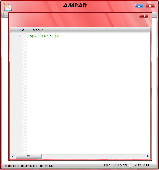 AMPAD slouží jako poznámkový blok s atraktivním rozhraním, které lze měnit. Silnou stránkou programu je podpora velkého množství různých formátů. Podporuje LUA skripty, xml, html a ostatní formáty.