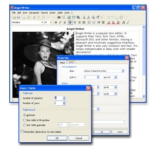 Angel Writer je výkonný textový editor pro editaci a tvorbu formátovaných textů, podporuje také práci s grafikou a tabulkami. Podporuje tvorbu dokumentů různých formátů (TXT, RTF, HTML). Tento textový editor je snadný na ovládání a je podobný Microsoft Wordu.