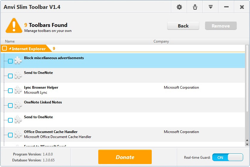 Anvi Slim Toolbar je sofistikovaný skener, který odhaluje nebezpečné panely nástrojů a doplňky nainstalované v prohlížečích Internet Explorer, Mozilla Firefox a Google Chrome. Některé panely nástrojů jsou opravdu pomocníkem pro Váš prohlížeč, ale některé ne. Tento program je vyvinut pro nakládání s nevyžádanými nástroji. Můžete jej použít ke včasné ochraně webového prohlížeče včetně IE, Firefox a Chrome od všech škodlivých panelů a nástrojů již instalovaných a mezitím můžete pohodlně spravovat instalované panely nástrojů a odstranit některé z nich, které si myslíte, že jsou nežádoucí.