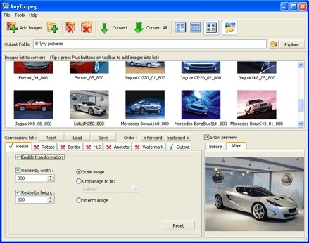 S programem AnyToJpeg můžete snadno a rychle konvertovat a editovat obrázky a digitální fotografie do formátu JPEG formátu. Obsahuje mnoho funkcí pro úpravu, jako jsou: rotace, roztažení, výřez, 3D ohraničení, změna odstínu, nastavení sytosti atd. Program má intuitivní uživatelské prostředí.