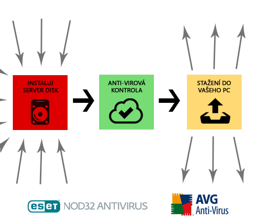Pro Vaše maximální bezpečí jsme zřídili dvojitou kontrolu našeho download serveru, od 1.8.2014 jsou naše data kontrolována pomocí AVG Anti-virus a také ESET NOD32 Antivirus systémem.