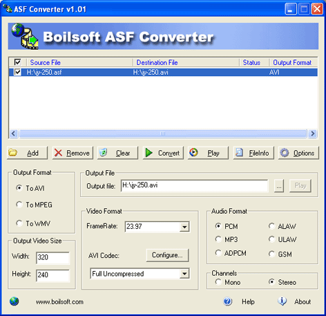 ASF Converter umožňuje převést několik typů souborů, včetně ASF, WMV, WMA, DivX, Xvid a DVD.