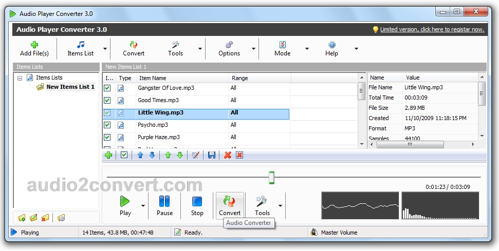 Audio Player Converter - tento nástroj přehrává a konvertuje mnoho typů audio souborů z jednoho formátu do druhého.