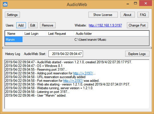 AudioWeb vytvoří na vašem počítači osobní audio server, který vám umožní přehrávat zvukové soubory .mp3 prostřednictvím libovolného webového prohlížeče, např. v mobilu nebo tabletu. Podporuje také přehrávání audio knih nebo podcastů, kde si pamatuje místo, kde jste skončili. Po nainstalování aplikace stačí v počítači nastavit složku, která se má streamovat, definovat uživatele pro přihlášení a můžete přehrávat soubory v jakémkoli zařízení, které obsahuje webový prohlížeč.