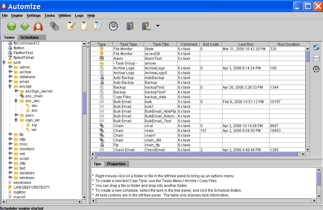 Program Automize slouží pro automatické plánované spouštění různých úkonů a aplikací. S tímto programem můžete provádět ftp přenosy, loggování, stahování z webu, monitorování webových stránek, stahování a odesílání emailových zpráv, telnet, ping, monitorování úloh atd., a to vše automaticky v určitý čas.