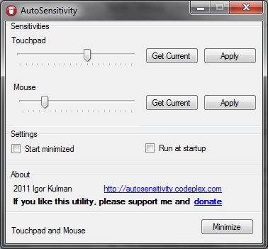 Tento nástroj je určen pro každého, kdo chce používat rozdílnou rychlost mezi touchpadem a myší. Rychlost (citlivost) si u každého zařízení uživatel nastaví.