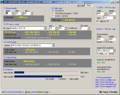 | Detail produktu AVI/XSVCD Bitrate Calculator | |