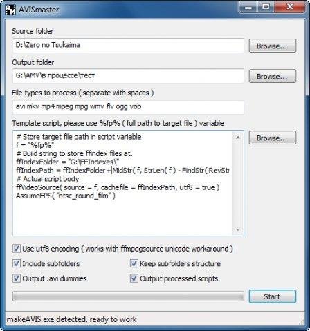 AVISmaster je malá a šikovná aplikace k dávkovému zpracování souborů a speciálně navržena pro AviSynth skripty. V této aplikaci lze vytvořit také makeAVIS (součást ffdshow), který může být použit pro generování skriptů pomocí šablony a vytvoření falešných AVI souborů s vloženým AviSynth skriptem wrapper pro cílové mediální soubory.