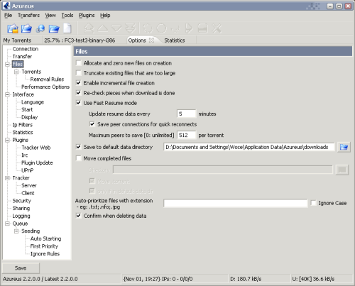 Vuze (dříve Azareus) je program podporující stahování více souborů současně a informuje průběžně o stavu stahování. Program je velice přehledný a je doplňen průvodcem nastavení.