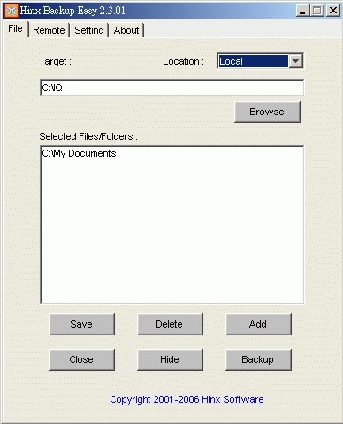 Backup Easy je šikovný nástroj pro zálohování vašich veškerých dat. Program automaticky zalohuje jakékoliv soubory a složky, umožňuje vzdálenou zálohu a podporuje FTP a SSL zálohování. Program má snadné uživatelské prostředí.