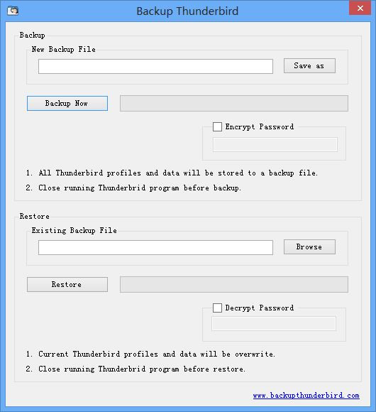 Backup Thunderbird je bezplatný nástroj, který vám pomůže zálohovat a obnovovat vaše e-mailové zprávy, adresáře, e-mailové účty a RSS kanály z Mozilla Thunderbird. Obsahuje jednoduché uživatelské rozhraní, které nevyžaduje žádné pokročilé znalosti.
