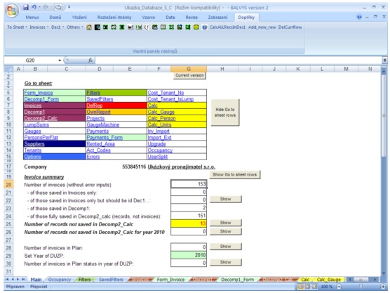 Uživatelským prostředím je MS Excel od 2003.