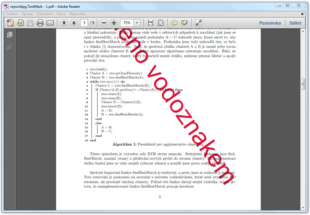 • Přidávání vodoznaků do textu, obrázků nebo kombinace obou