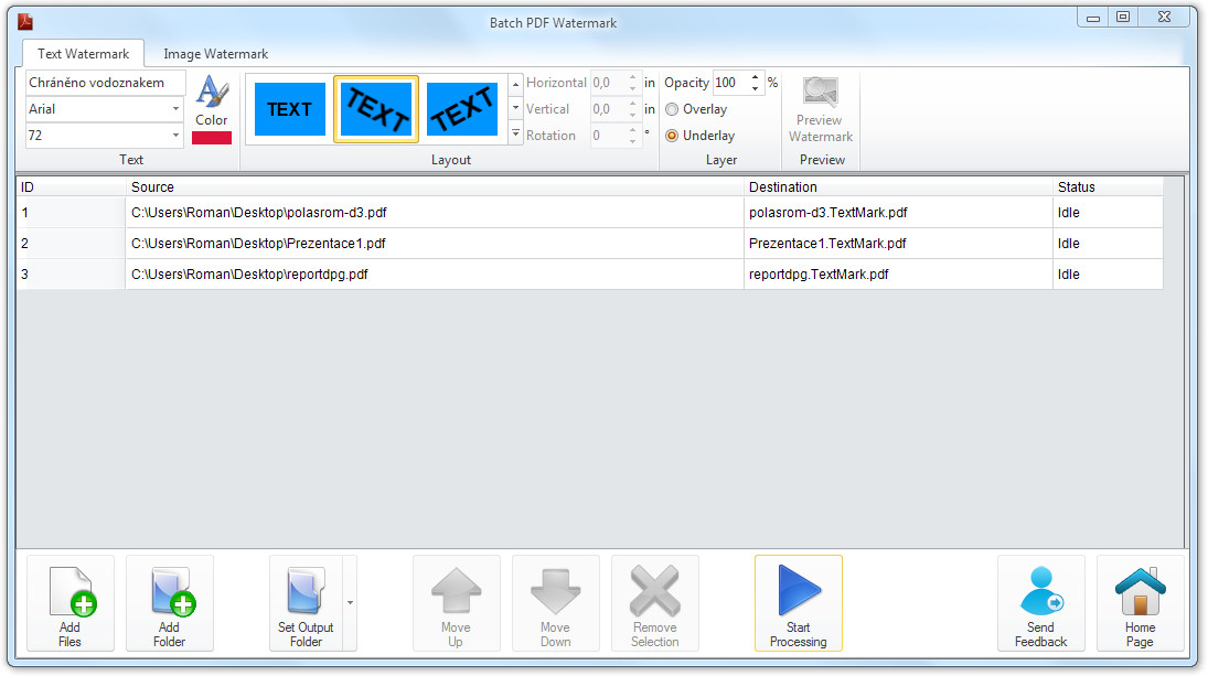 • Hromadné přidávání vodoznaků do PDF dokumentů