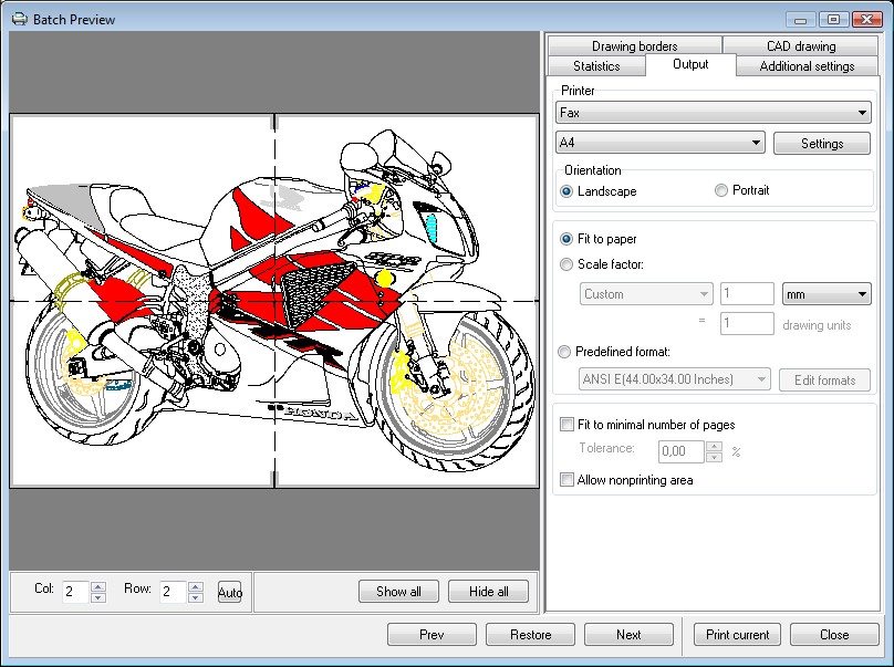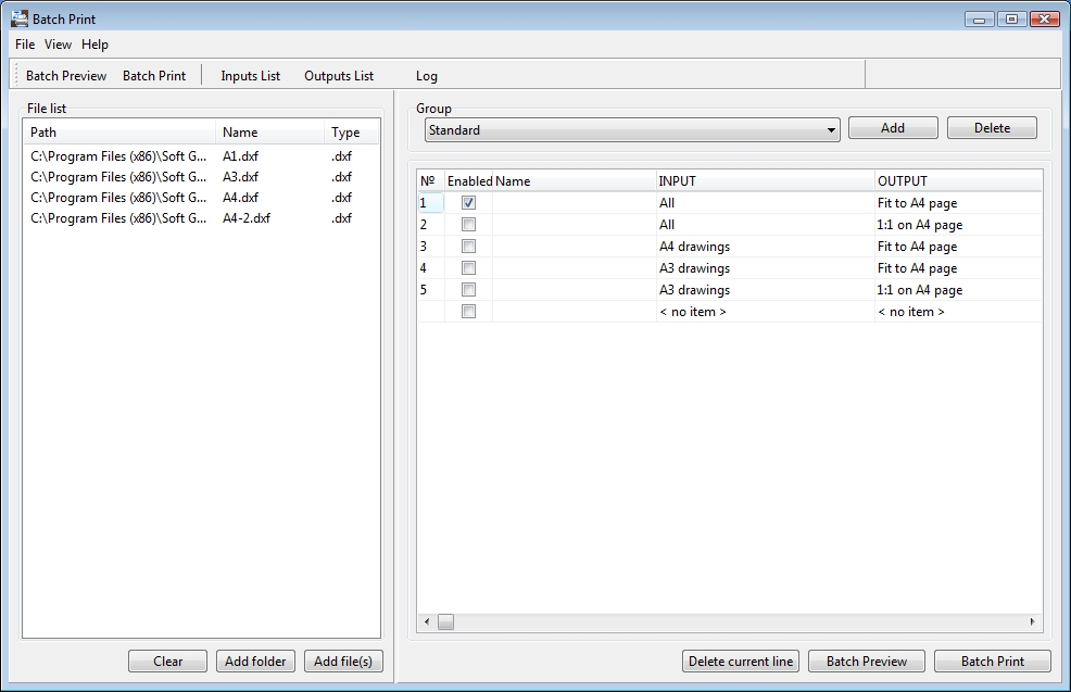 Účelem Batch Print je kompletní automatizace procesu tisku výkresů uživatele. Tento program je schopen tisknout širokou škálu formátových souborů představující vektorové a rastrové grafiky. Poskytuje rozsáhlé možnosti pro filtrování výkresů a nastavení tisku pro další přizpůsobení, např. tisku "jedním kliknutím". Program také umožňuje uživatelům tisknout výkresy z jednoho modelu na různých tiskárnách.