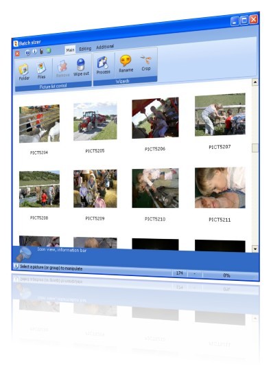 Batch Sizer je nástroj, který byl vytvořen pro snadnou změnu velikosti a úpravu většího množství obrázků a digitálních fotografií. Podporuje hromadný proces převodu velikosti, rotace, ořezávání, vložení vodoznaku, ftp upload, tvorba zip souborů atd. Umožňuje tvorbu miniatur obrázků (thumbnail) pro snadnou manipulaci s nimi. Program má příjemné a intuitivní uživatelské rozhraní.