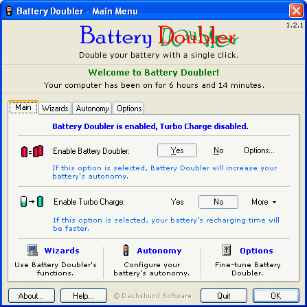 Battery Doubler je program, který pomáhá zlepšit výkon baterie notebooku. Nabízí řadu funkcí, které vám pomohou udržet baterii v dobrém stavu a prodloužit její životnost.
