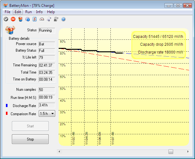 BatteryMon je monitorovací řešení, které umožňuje uživatelům sledovat výkon baterie notebooku a UPS. Graficky zobrazuje stav baterie s podrobnými statistikami. Utilita informuje i době do úplného vybití baterie.
