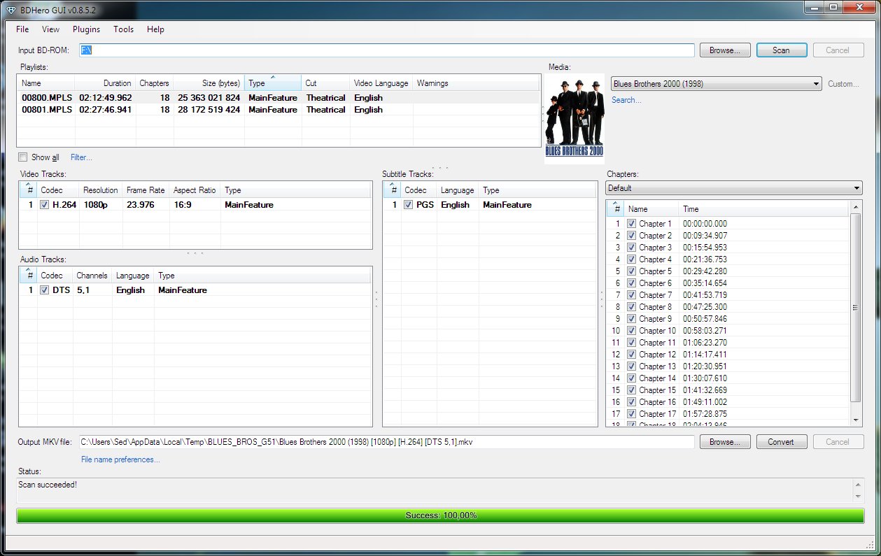 BDHero je aplikace, která zajišťuje bezeztrátovou konverzi mezi Blu-ray a MKV, také automatickou detekci názvu filmu, identifikaci hlavního playlistu filmu (MPLS soubor), detekci metadat (název filmu, rok vydání, plakát, názvy kapitol apod.). S aplikací nechybí ani možnost přizpůsobení názvu souboru, výstupního adresáře, horizontálního rozlišení a dalších atributů. Kromě aplikací třetích stran (BDInfo, FFmpeg, MKVToolNix) spoléhá také na online filmové databáze.