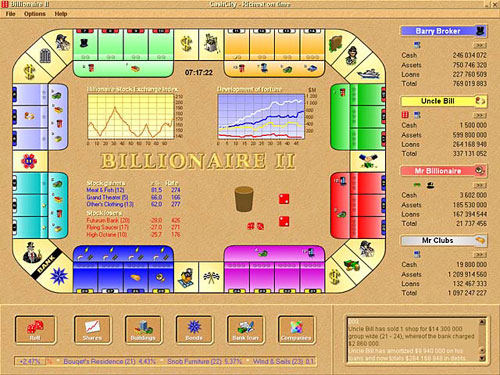 Vezměte si úvěr, investujte do dluhopisů a akcií! Tato hra není jenom o štěstí, ale také o plánování a strategickém uvažování. Vyhrává ten, kdo se jako první strane miliardářem!