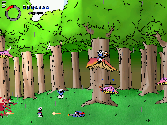 Blip and Blop jsou dva manianci vyadající jako Pac-man. Dalo by se říci, že je to taková arkádovka. Skáčete, hopsáte, sbíráte předměty a zbraně. Musí pomáhat nevinným a vzpírat se nad zlými bytostmi, které je trápí. Proto když přijdou ke Gargamelovi, zjistí, že ho ohrožují zlí šmoulové a začíná masakr - záchrana.