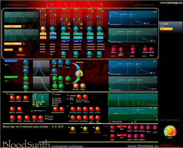 Šestioscilátorový synth Bloody Synth a aditivní Bloody Queen. Oba jsou jak jako standalone, tak v provedení VST pluginu - třeba pro Cubase, v plné verzi a bezplatně.