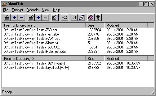 BlowFish 2000 je malý a snadno ovladatelný, nástroj k šifrování souborů. Jednoduše přetáhněte soubory a složky do programu k rychlé ochráně citlivých dokumentů a poté zadejte šifrovací klíč k zakódování a dekódování souborů, které chcete chránit před zvědavýma očima.