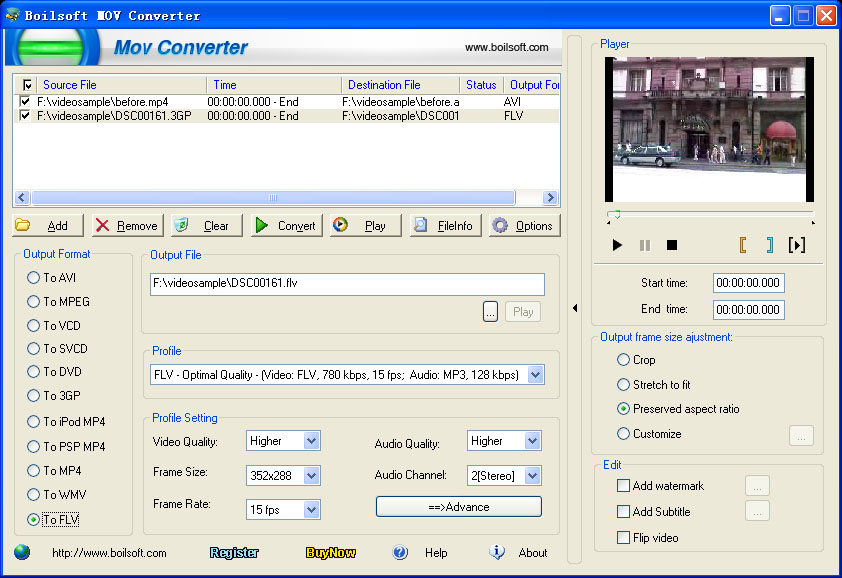 Boilsoft MOV Converter je nástroj pro enkódování mezi několika video formáty, včetně AVI, MOV, 3GP, MPEG, FLV, WMV, MP4 a VOB.