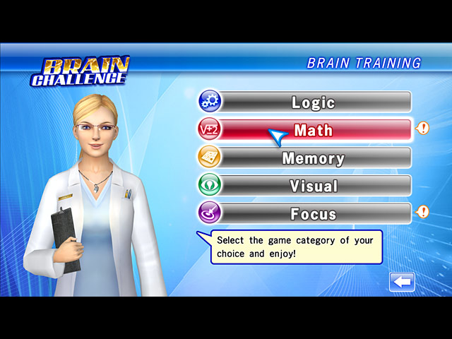 Brain Challenge obsahuje více než 20 her v pěti kategoriích:
