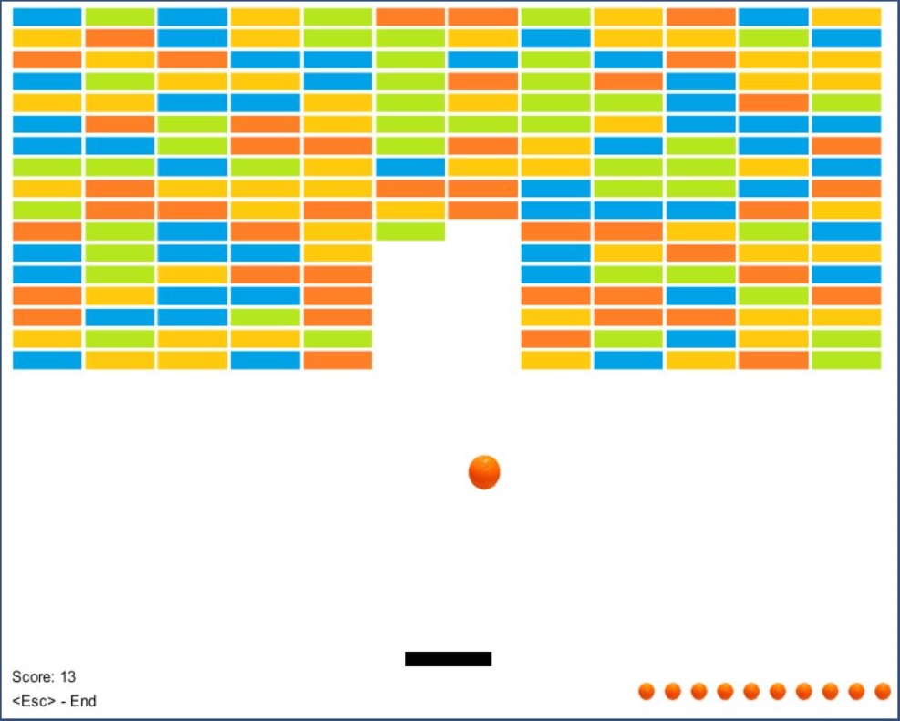 Brick Wall Tennis je snadná a hlavně známá hra, kde zasahujete míčkem barevné cihličky a tím zvyšujete své skóre. Cílem hry je zasáhnout všechny barevné cihličky a nenechat míček propadnout.
