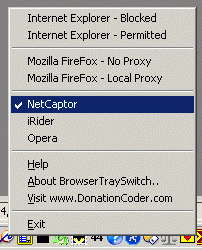 BrowserTraySwitch je šikovná utilitka pro přepínání mezi prohlížeči. Stačí na ní kliknout pravým tlačítkem a změnit výchozí prohlížeč, následně budou soubory a url otevřeny v již zadaném prohlížeči.