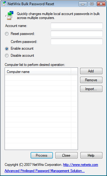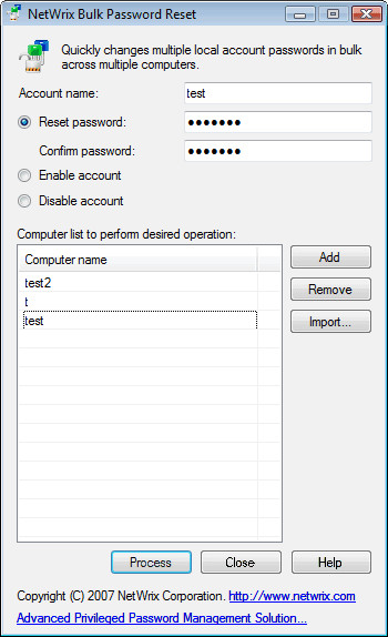 Netwrix Bulk Password Reset je bezplatný nástroj, který vám umožňuje resetovat hesla místních správců i hesla místních uživatelských účtů na více pracovních stanicích najednou, čímž lépe zabezpečíte servery Windows. Navíc vám rychlý reset hesla umožňuje změnit hesla místních správců na více počítačích a serverech na dálku, aniž byste se do nich museli přihlašovat.