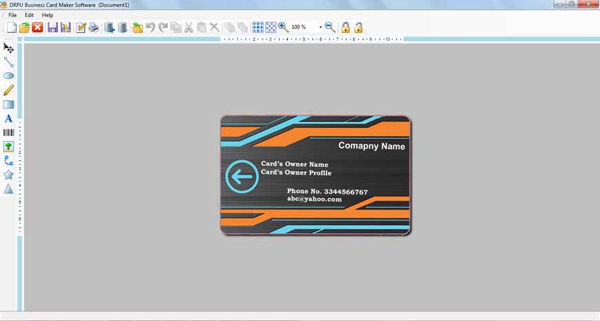 Vizitky lze navrhnout velmi snadno a rychle pomocí několika designových nástrojů: Line, Ellipse, Barcode, Pencil, Rectangle, Text, Picture, Arc, Triangle a Star objektů.