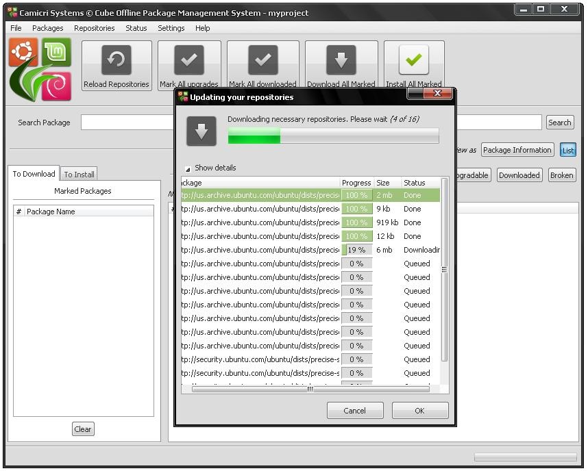 Camicri Cube je přenosný správce balíčků (Like Synaptic a Ubuntu Software Center), které mohou být použity a spuštěny v libovolné platformě (Windows, apt-distribucích Linuxu), on-line a off-line, aniž by jste museli cokoliv instalovat na flash disk nebo jiné přenosné zařízení. To Vám umožní stahovat Linux aplikace v každém počítači.