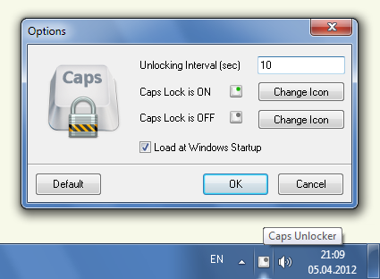 CapsUnlocker umožňuje odemknout stav Caps Locku po dobu neaktivity klávesnice. Nástroj Vám pomůže v případech, kdy často zapomínáte vrátit zpět Caps Lock po použití.