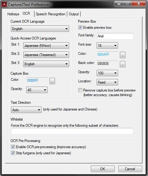 Capture2Text umožňuje uživatelům rychle načíst OCR a ve výchozím nastavení, výsledek uložit do schránky. Podporuje 50 + jazyků včetně čínštiny, angličtiny, francouzštiny, němčiny, japonštiny a španělštiny. Aplikace je přenosná a nevyžaduje instalaci.