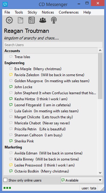 CD Messenger nastavuje zcela nový standard v oblasti kancelářské produktivity a efektivity na pracovišti. Nyní můžete komunikovat se svými kolegy z kanceláře, vedlejší kanceláře nebo po celém světě v prostředí, které je zcela bezpečné, stabilní a spolehlivé. Neexistuje žádný limit na počet zaměstnanců, kteří mohou využít CD Messenger. Ať už se jedná o malou kancelář s pěti zaměstnanci, která se nachází na jednom patře nebo obří korporace s pěti kancelářemi na pěti kontinentech, může je tento messenger všechny spojit. Využívá internet a dodává robustní on-line komunikační zkušenosti, ve kterém si každý může komunikovat se všemi ostatními kdykoliv, po celou dobu používání rozhraní chatu.