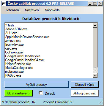 Aplikace Český zabiják procesů je určena pro pobíjení a likvidaci nepříjemných procesů, které zpomalují váš počítač a komplikují vám život. Zároveň šetří vaše peníze, protože pokud procesy nevyužívají váš procesor a paměť, počítač "žere" méně elektrické energie. Dochází tím k docela významné úspoře peněz za odběr elektrické energie. Český zabiják procesů je z tohoto hlediska "zelená" aplikace, byť na ni stát nebo Evropská Unie nedává žádnou dotaci, což je přinejmenším podivné :-). Český zabiják procesů je určen jak pro běžné uživatele, tak pro firmy, kterým při plošném použití umožní šetřit energii a zrychlit práci na počítačích uživatelů. Při spouštění aplikace pod běžícím účtem administrátora lze pobíjet procesy přihlášených uživatelů (např. k serveru nebo k běžné stanici) a tak například zamezit využívání některých aplikací nebo přehrávání videí apod.