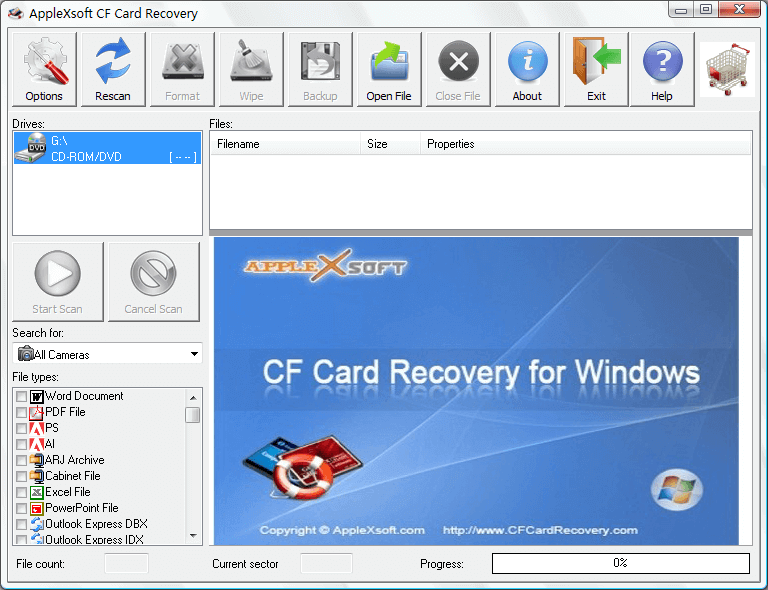 CF Card Recovery je snadno použitelný nástroj, pomocí kterého obnovíte odstraněné, ztracené, formátované nebo poškozené fotografie, obrázky, videa a další soubory z různých paměťových karet (např. CompactFlash, CFast, SD karta, SDHC, microSD, USB disk, paměťové karty, karty XD atd.).