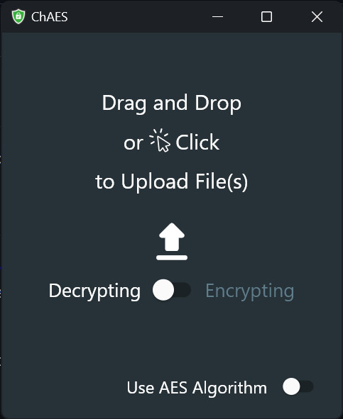 Stáhnout zdarmaChAES je nástroj pro šifrování a dešifrování souborů pomocí algoritmů XChaCha20 a AES-256. Jedná se o jednoduchý nástroj s uživatelsky přívětivým rozhraním, který je k dispozici pro Windows.