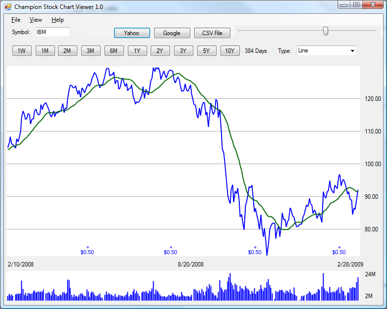 Champion Stock Chart Viewer umožňuje stahovat, zobrazovat, ukládat a tisknout grafy burzovních dividendů.