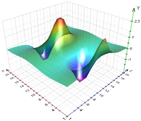 Tento program umožňuje zobrazovat data v třírozměrném grafu. Barva grafu se mění podle y-lonové hodnoty. Program využívá pro zobrazování 3D Open GL grafickou knihovnu.