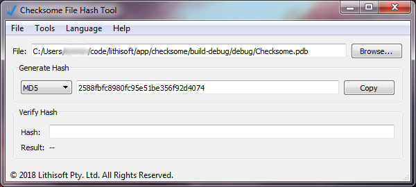 Checksome File Hash Tool je nástroj, který se popužívá k ověření, že soubor, který jste obdrželi, nebyl poškozen. Vypočítáním hash souboru a jeho porovnáním s hash poskytnutým vydavatelem souboru můžete být přiměřeně přesvědčeni, že soubor nebyl změněn. K dispozici je několik algoritmů pro výpočet hashe (MD4, MD5, SHA-1, SHA-256, SHA-224, SHA-384, SHA-512, SHA3-224, SHA3-256, SHA3-384 a SHA3-512).