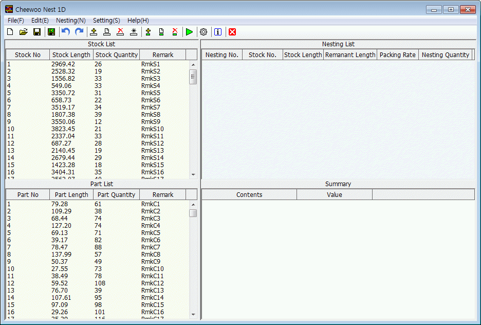 Cheewoo Nest1D je inženýrský nástroj pro tvorbu plánů pro řezání jednorozměrných materiálů (tyče, trubky či dráty, ...).