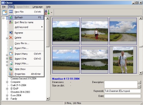 Cheez je výkonný, lehce použitelný nástroj pro katalogizaci obrázků. Hlavním účelem je pomoci lidem s digitálními fotoaparáty organizovat, upravovat a sdílet jejich fotografie a videoklipy. Samozřejmě může být použit pro jakýkoliv druh kolekcí obrázků.